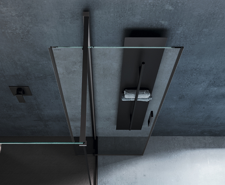 The pivoting door solves this problem by allowing us to have, directly upon exiting the shower, a towel ready (and if we want also warm) that we can grab on the fly. The Kubik collection solves this enigma, proposing a pivoting door 18 cm away from the wall, a considerable size, which allows you to easily install a towel holder. Seeing is believing!