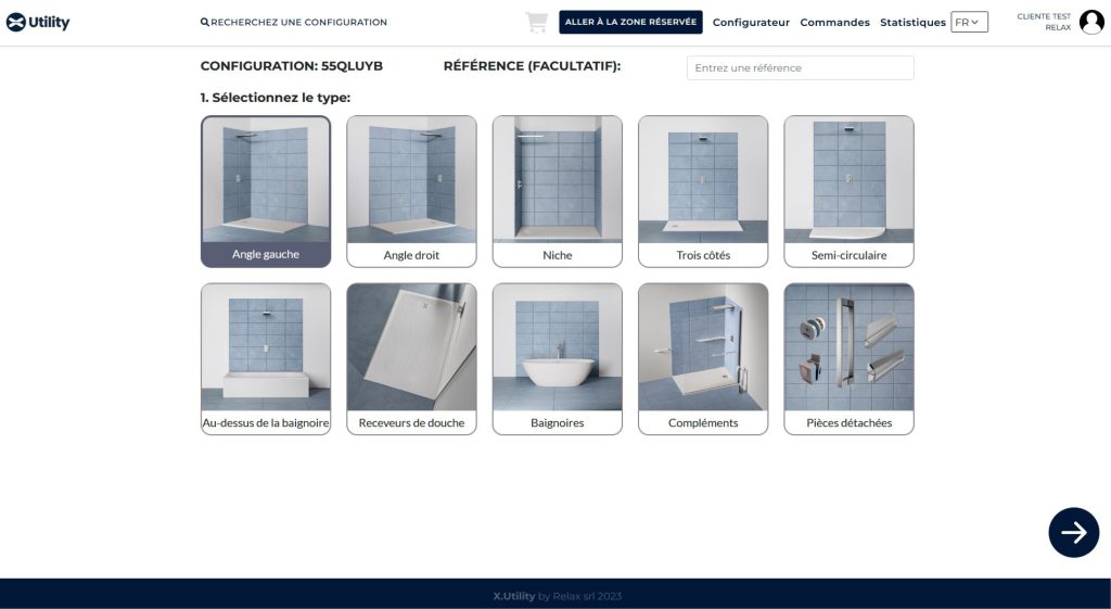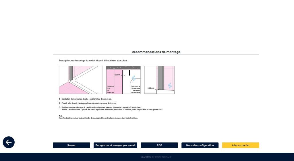 - Choisissez le type d’installation de la cabine de douche (ou du produit Relax) que vous préférez