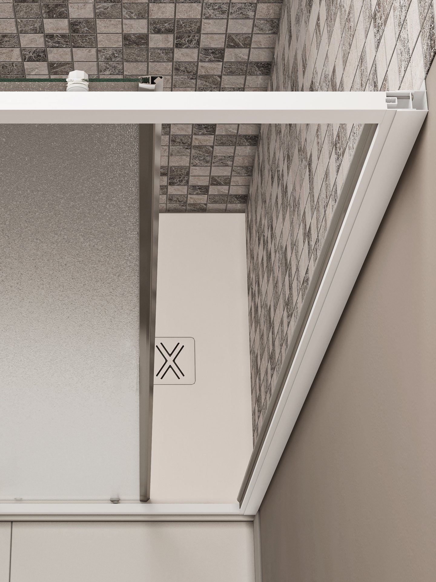 Flat SC1 est une cabine de douche en niche avec porte coulissante, poignée en aluminium et roulements en acier et téflon, la meilleure, utilisée par Relax sur tous les modèles.