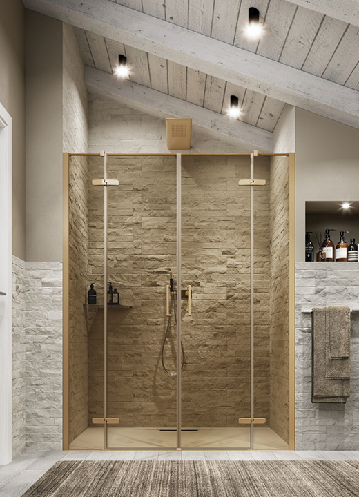 In assenza di una luce naturale, serve un’illuminazione artificiale che sappia mettere in risalto gli elementi e le texture circostanti, accostando i colori degli elementi di arredo. Nell’immagine con Cardine B2 di Relax, vedi come valorizzare una nicchia in mansarda con una cabina doccia in cui gli elementi sono in perfetta armonia tra loro, illuminazione compresa.