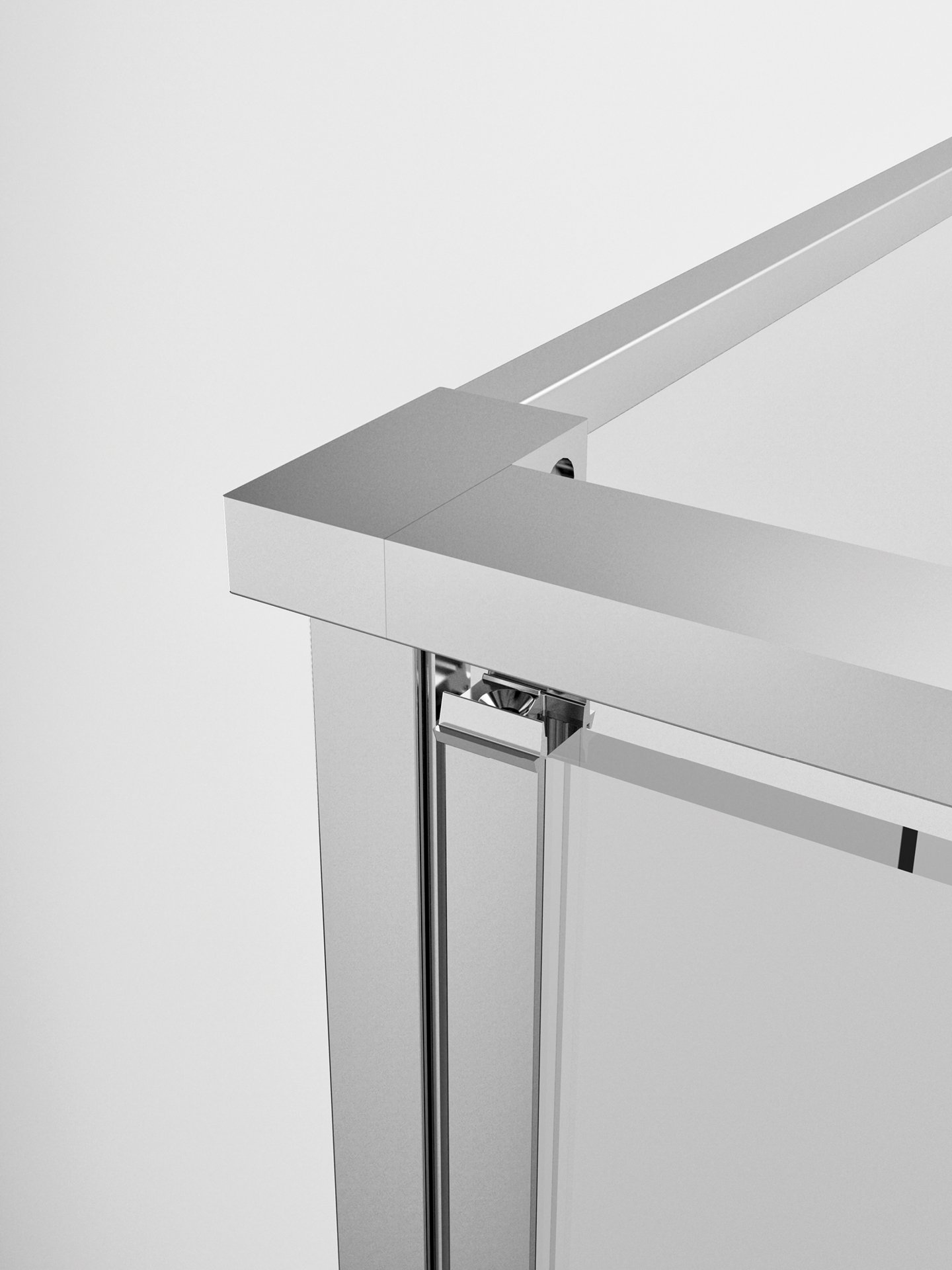 La versione AB+F è un box doccia angolare senza profili, dal design estremamente essenziale e minimale. È disponibile nelle versioni da 6 e 8 mm di spessore del vetro.