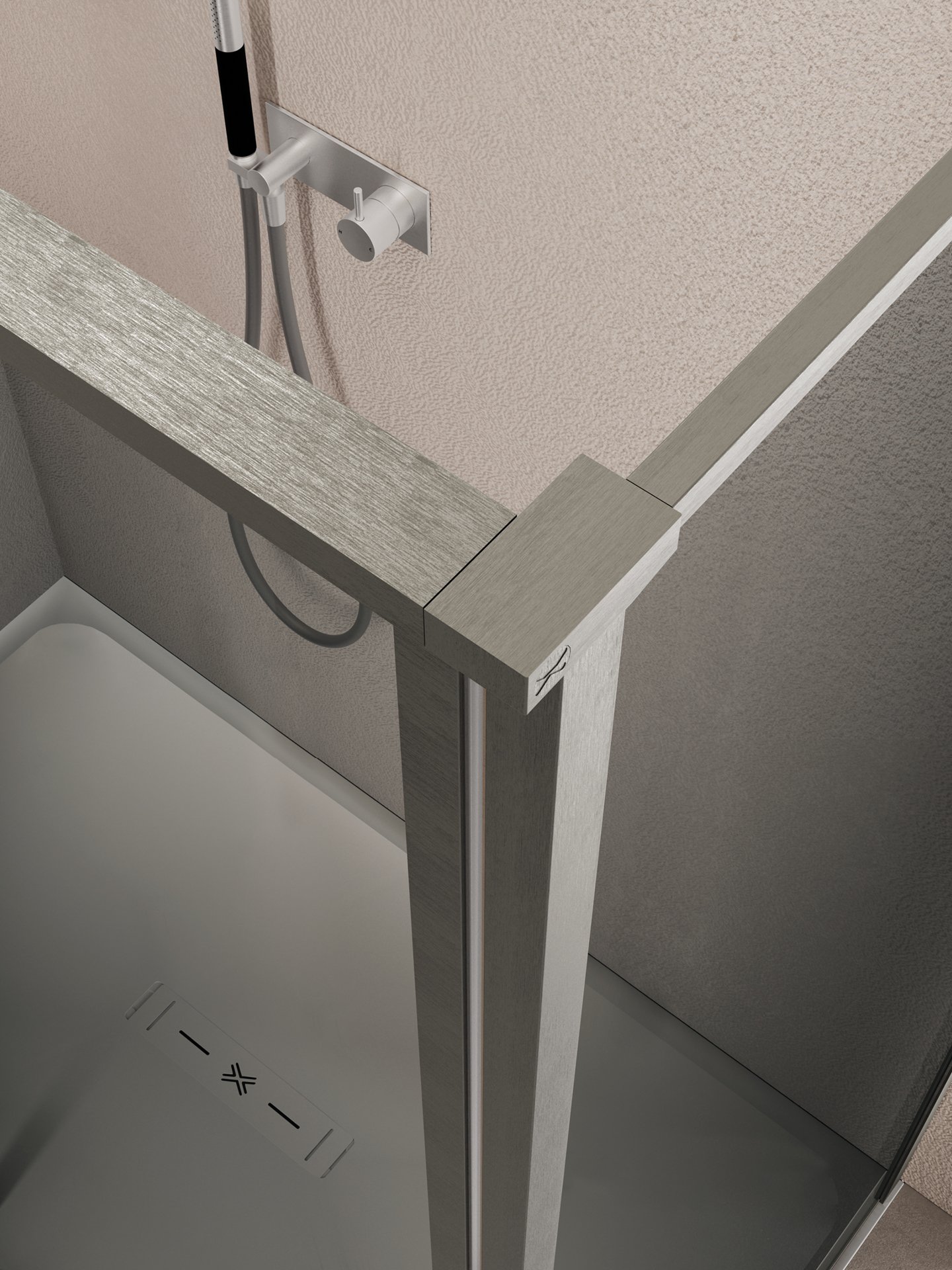 La versione PA+F è un box doccia angolare senza profili, dal design estremamente essenziale e minimale.