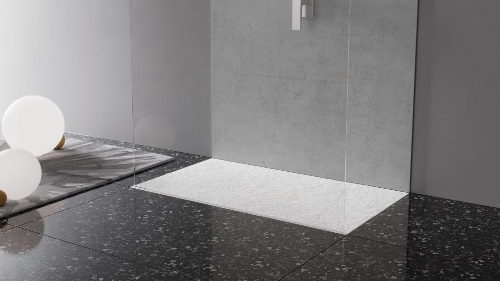 È composto interamente in solid surface e gel-coat, un composto di resine e minerali abbinato ad uno strato protettivo esterno. È un prodotto antiscivolo e antibatterico, ripristinabile nel tempo.