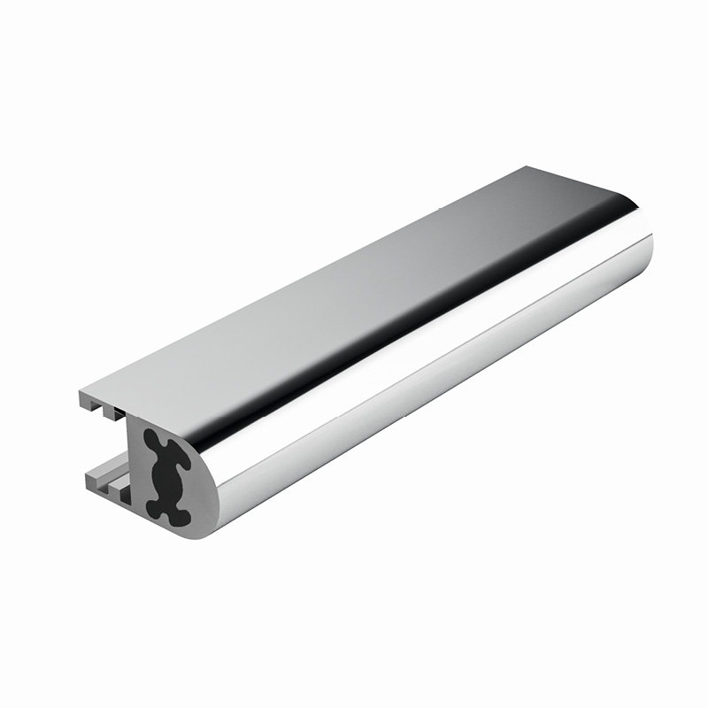 Il profilo a muro prevede l’inserimento del vetro a pressione senza dover utilizzare viti. Per stabilizzare il cristallo è utilizzato il supporto a muro di una barra stabilizzatrice.