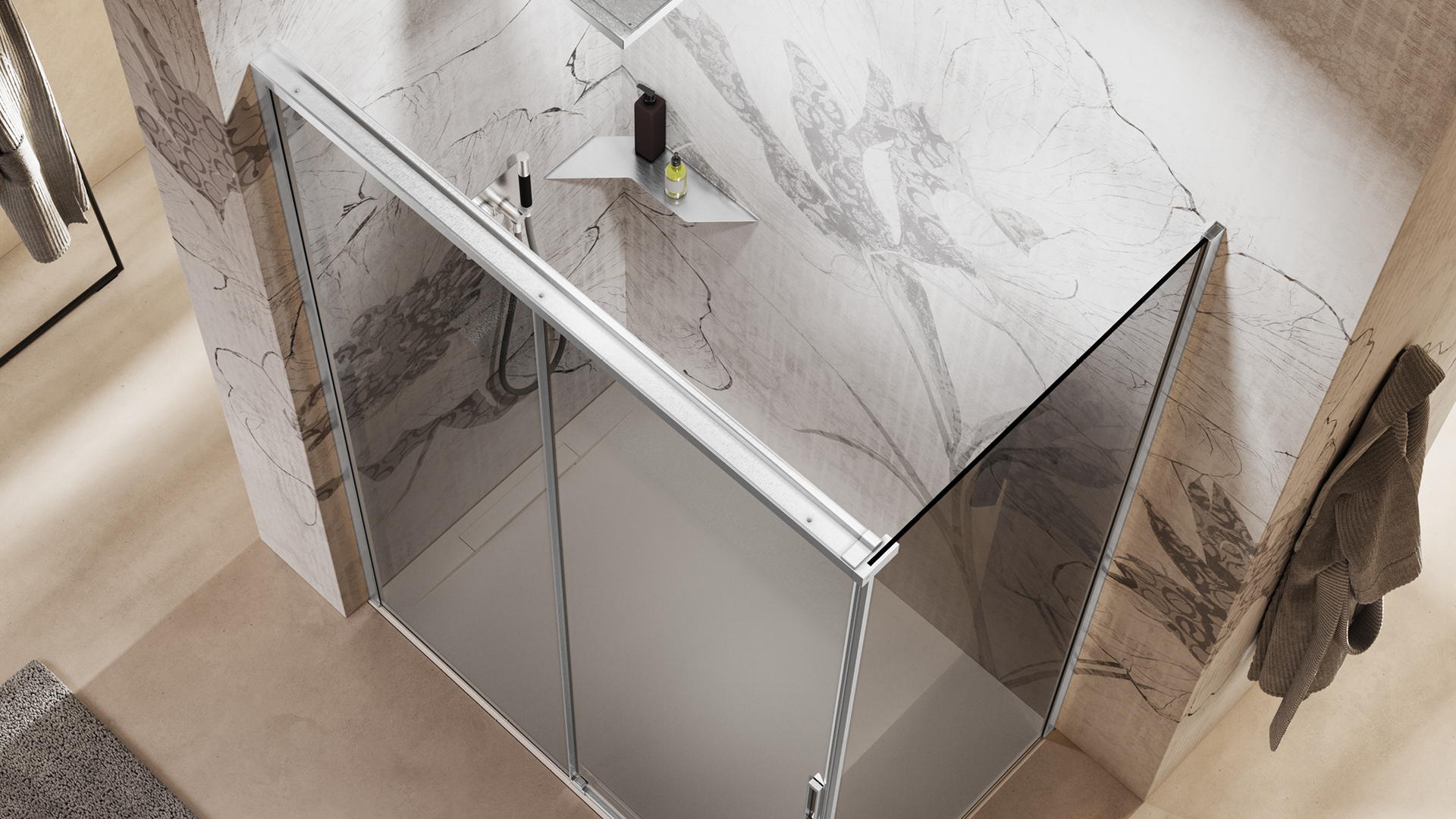 Infinito SF+F — это душевая кабина с раздвижной дверью и фиксированной боковой частью, стандартно оснащенная защитой от известкового налета и закаленным стеклом толщиной 8 мм с абсолютной новинкой — магнитной левитацией.